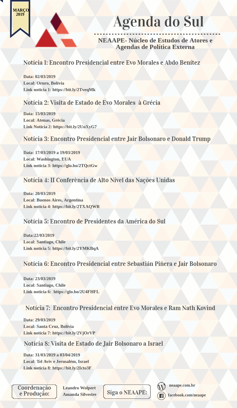 O Conjuntura Latitude Sul é uma publicação mensal voltada ao acompanhamento das notícias relacionadas aos temas de pesquisa dos grupos que integram a plataforma LATITUDE SUL (GRISUL, LABMUNDO, NEAAPE, OPSA).