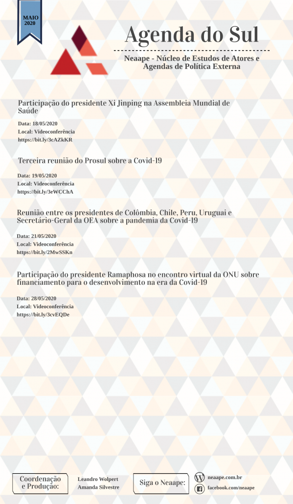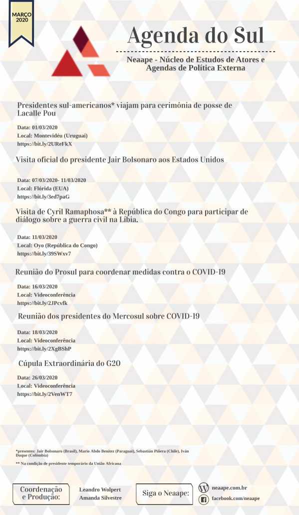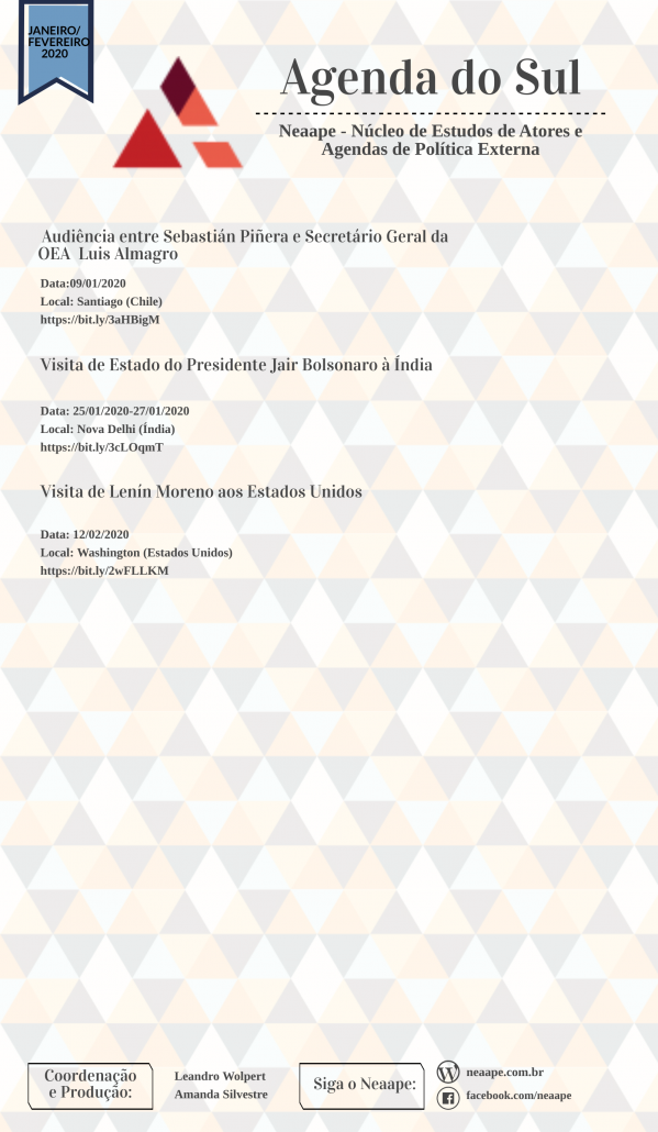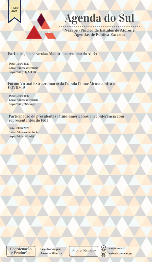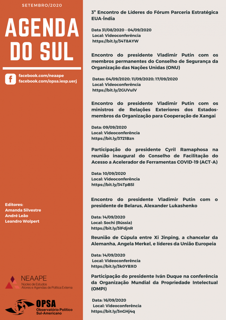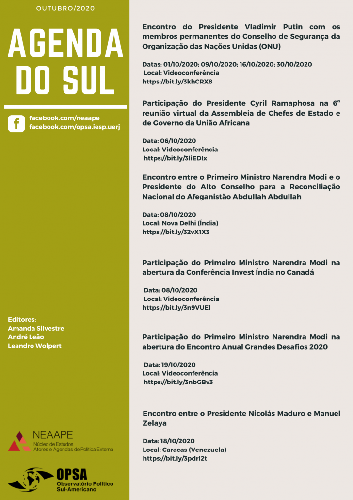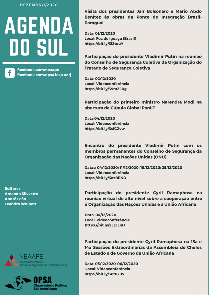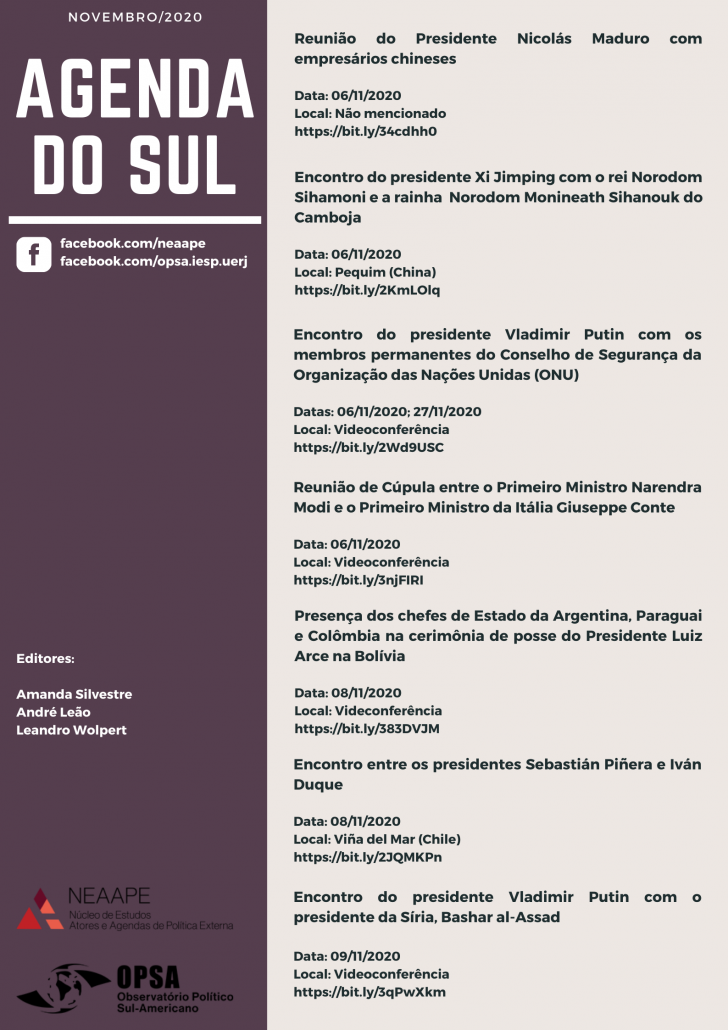Saiu o novo Agenda do Sul! O Agenda do Sul é uma publicação do Neaape em conjunto com o Observatório Político Sul-Americano (Opsa)